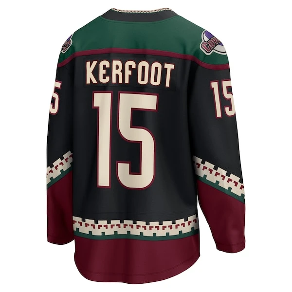 Refresh your Arizona Coyotes gear with this Alex Kerfoot Breakaway jersey from Fanatics Branded. It features the same authentic team graphics and colors your Arizona Coyotes wear on the ice. This Alex Kerfoot jersey is also crafted with lightweight trims, breathable material and a tailored fit to ensure a comfortable experience on game day.
