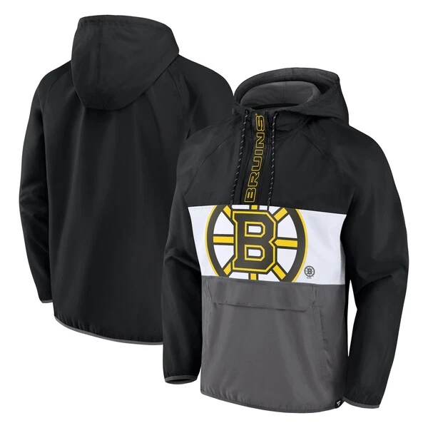 Get ready to cheer on the Boston Bruins by gearing up in this Flagrant Foul Anorak half-zip jacket from Fanatics Branded. It features three layers of recognizable team colors, as well as your beloved franchise’s iconic logo and name going across the front. The adjustable hood and raglan sleeves work together to give you a fit and feel that lets you exhibit your unwavering Boston Bruins fandom comfortably.