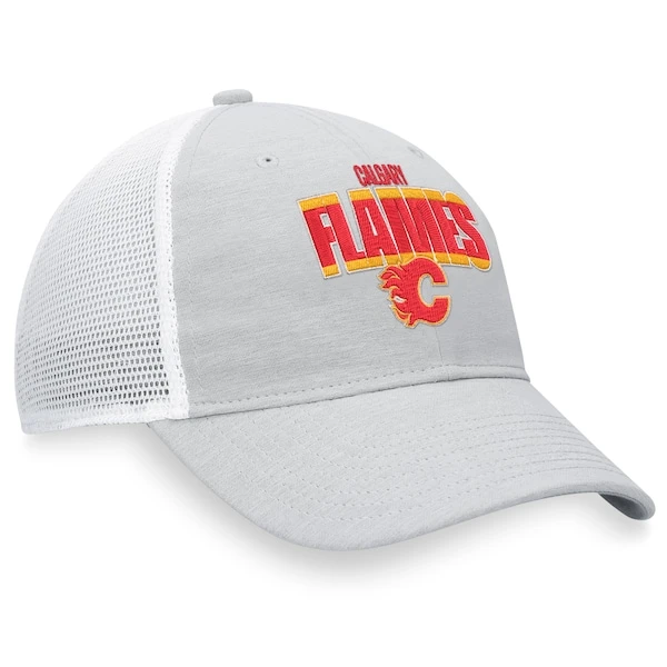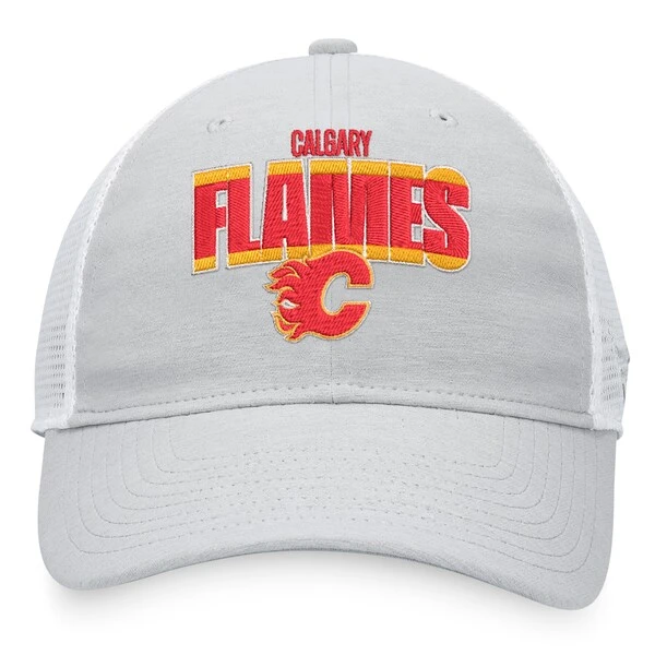 Flaunt your Calgary Flames fandom while maintaining comfort in this Fanatics Branded trucker hat. It offers breezy mesh panels for breathability and a snapback closure to ensure the optimal fit. Plus, the heather fabric behind the striking Calgary Flames graphics makes it the ultimate top-off to pair with your game day gear.