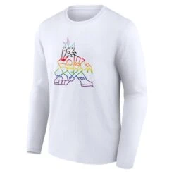 Let everyone know that Arizona Coyotes fandom is for everyone by adding this Fanatics Branded Pride long sleeve T-shirt to your collection. It offers a classic design and comfortable fabric to keep you feeling as good as you look. Plus, the striking Arizona Coyotes graphics on the chest showcase with a rainbow colorway showcases your pride in yourself as well as your favorite NHL squad.
