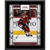 Each collectible comes designed with a photo of the player and home arena, a team logo, and an actual piece of game-used puck from an NHL game (not from any specific game). It is officially licensed by the National Hockey League and comes with a statement of authenticity from Fanatics Authentic. It is framed in black wood and measures 15″ x 17″ x 1″.