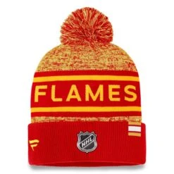 Men’s Fanatics Branded Red/Yellow Calgary Flames Authentic Pro Cuffed Knit Hat With Pom