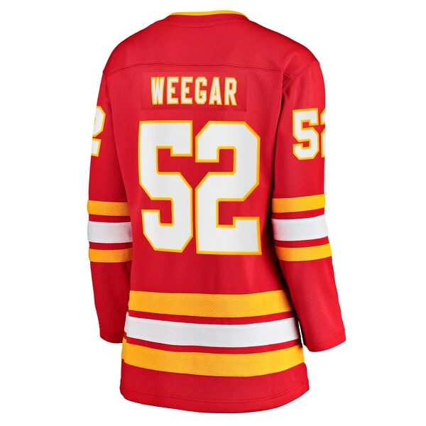Show MacKenzie Weegar some love with this Calgary Flames Breakaway Player jersey from Fanatics Branded. It features the same authentic team graphics and colors your Calgary Flames wear on the ice. This MacKenzie Weegar jersey is also crafted with lightweight trims, breathable material and a tailored fit to ensure a comfortable experience on game day.