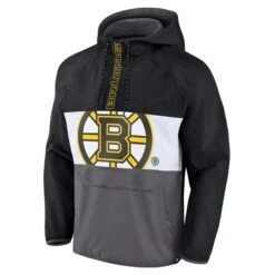 Men’s Fanatics Branded Black Boston Bruins Flagrant Foul Anorak Raglan Half-Zip Hoodie Jacket
