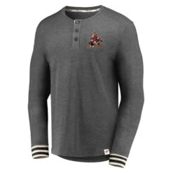 Men’s Fanatics Branded Heathered Charcoal Arizona Coyotes True Classics Henley Long Sleeve T-Shirt