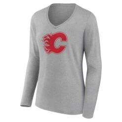 Women’s Fanatics Branded Heather Gray Calgary Flames Personalized Name & Number V-Neck T-Shirt